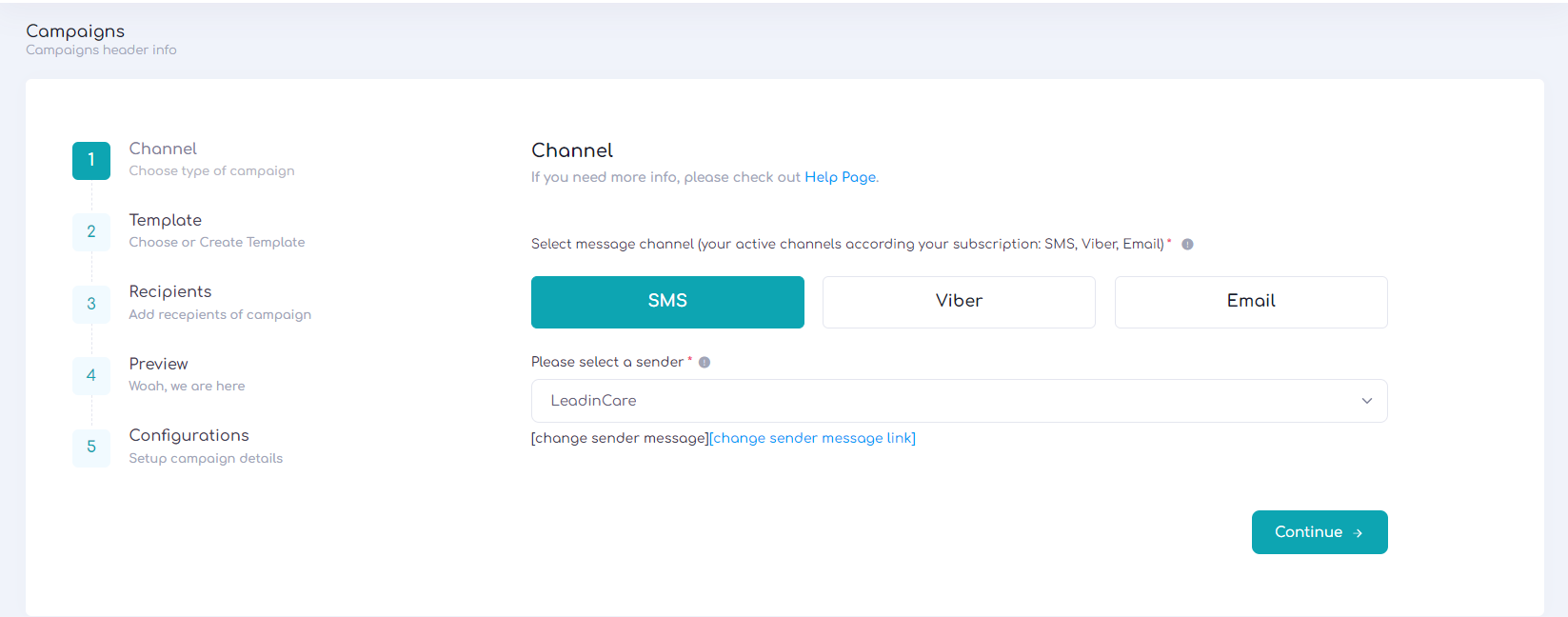 Αν έχετε επιλεξει sms channel θα πρεπει να επιλεξετε τον sender